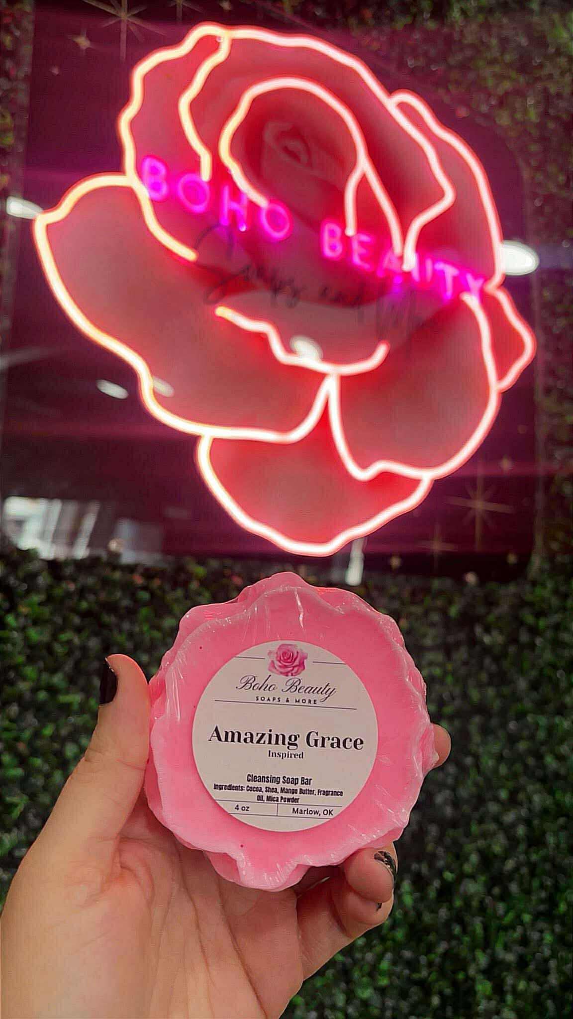 Each 4 oz bar is made with our rich triple butter base of mango, cocoa, and shea butters to gently cleanse while leaving skin soft and moisturized. Finished with skin-safe mica for a soft shimmer and elegant look.